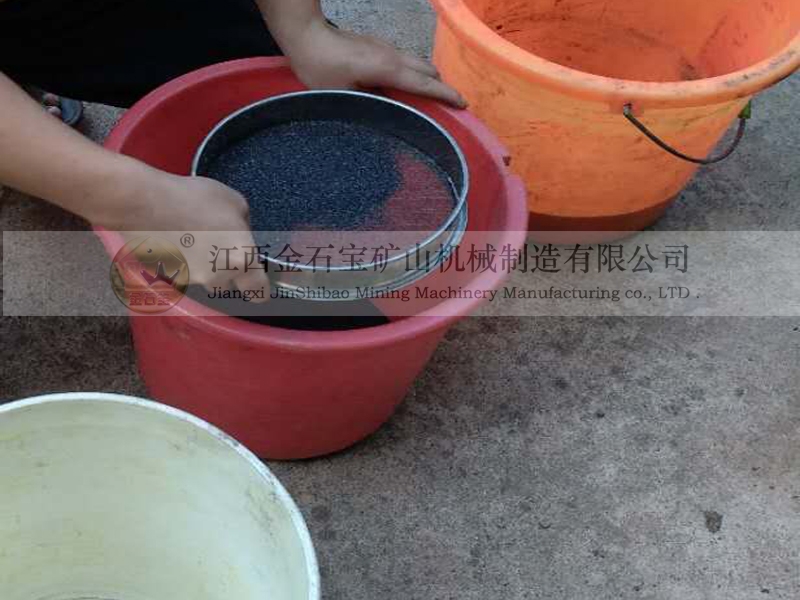 第三步:分选(这里采用重选)。通过元素的比重差来将矿物分层截取。