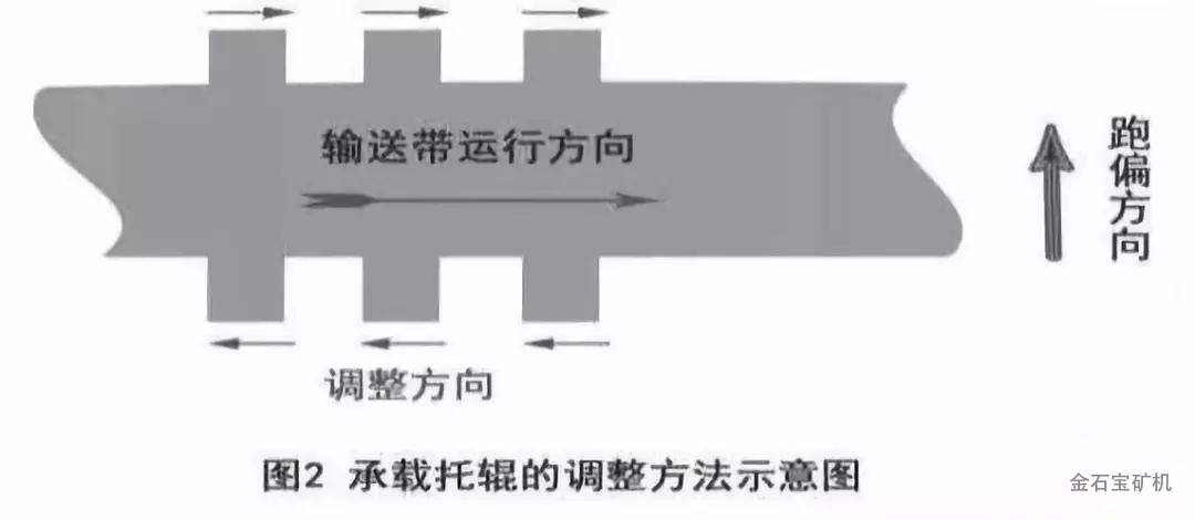 根据上述分析,若输送带在输送机中部出现跑偏时的调整方法: