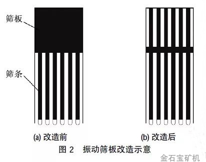 (2)振动筛落料处锰板宽1500mm,长1000mm,将该处的锰板加厚,并将锰板同棒条对齐割成条形,形成条形筛网。