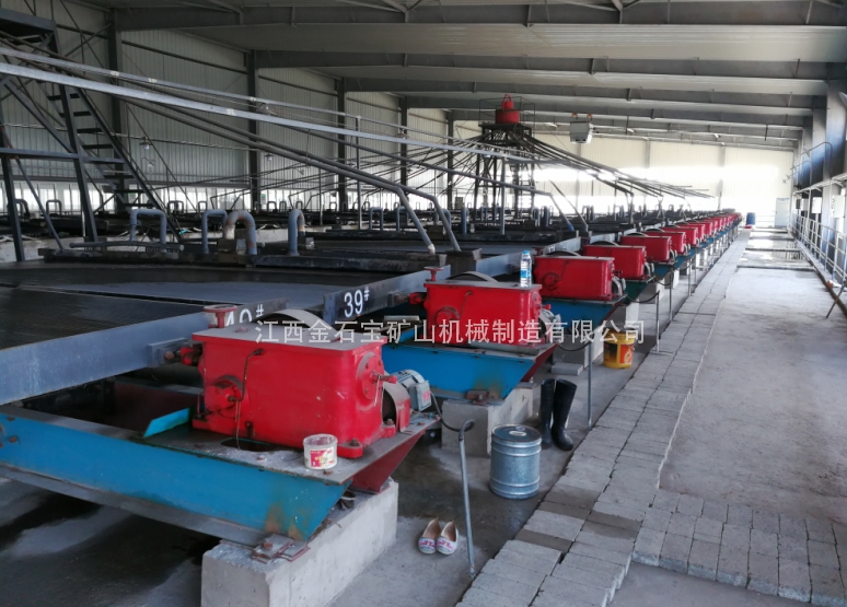 两者主要影响矿粒在横向的运动速度及沫层的松散度。增加坡度可使水流的速度加大,一般处理细粒物料时,坡度宜小些,处理粗粒物料时,坡度宜大些。坡度可在0°~10°范围内调节。对于不同物料的坡度可以采用下列数值作为参考:小于2毫米的粗粒级用3. 5°~4°;小于0. 5毫米的物料用2. 5°~3. 5°;小于0. 1毫米的细粒物料用2°~2.5°;对于矿泥(0.074毫米)采用20左右。应当注意的是,坡度的选择要与水量很好地配合起来。区水流分布均匀,不起波浪,矿砂不成堆,精选区分带明显,带宽而薄,床面无矿区宽度合适。
