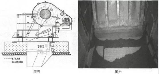 如图五所示,改造后下料口如图六所示: