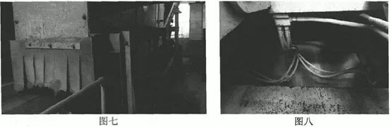 用运输带将颚式破碎机前拉杆位置进风口进行封堵,阻断外部风进入漏斗内,减少除尘器风量流失,以此来解决除尘效果差的问题。现场如图七、图八所示: