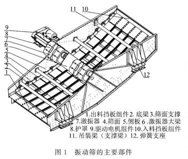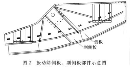 在实际生产中,振动筛开裂点一般有以下几个部位:侧板、底梁、激振器大梁、入料挡板组件、出料挡板组件。虽部件不同,但其处理原则相同,即对其进行加固处理以防止开裂位置延长。