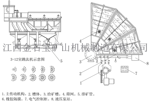 2.跳汰室横截面形状为梯形,单室面积为3.3m²;