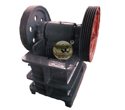 本机主要由机架、动鄂、偏心轴、鄂板、肘板等。电动机通过三角皮带传动偏心轴多使动鄂按照已调整好的轨迹进行运动)从而将破碎腔内的物料予以破碎。