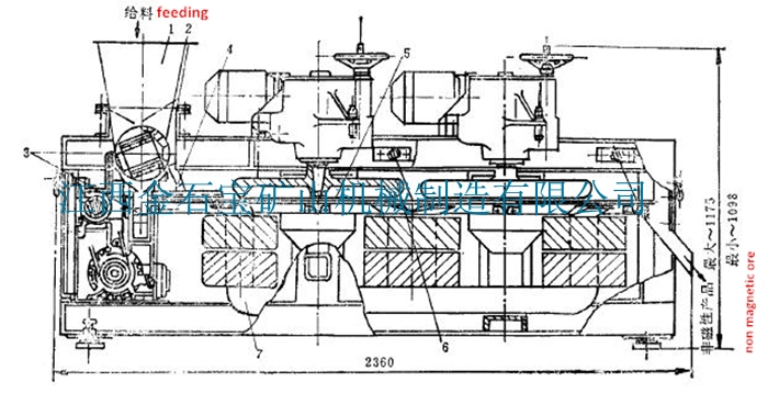 主机由给矿装置、弱磁滚筒、传动部分、物料输送装置、磁盘、电磁系统、机架等组成。电控部分由电源、控制、整流、工作指示等元件组成。