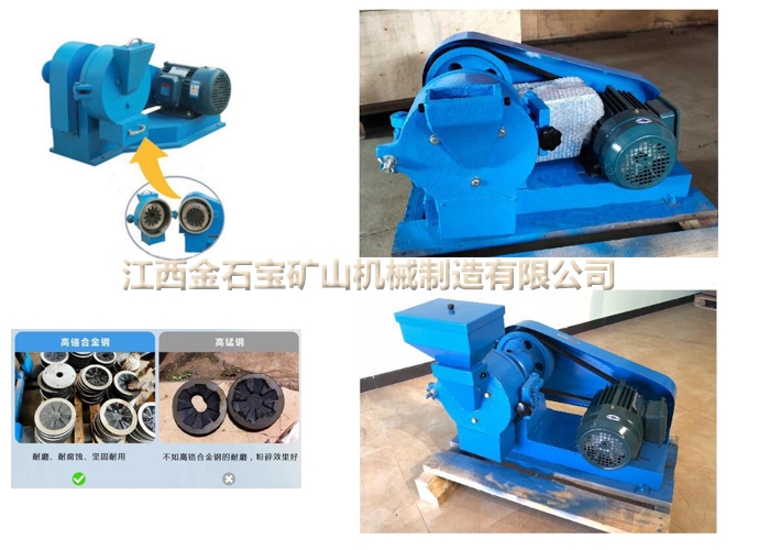 1、圆盘粉碎机由机体、底座、主轴、活动磨盘、固定磨盘、端盖及料斗等构成。电机启动后,经三角皮带将动力传给皮带轮,带动主轴旋转,并使活动磨盘固定磨盘相对运动产生挤压磋磨作用,从而使进入磨盘中间的物料被粉碎。