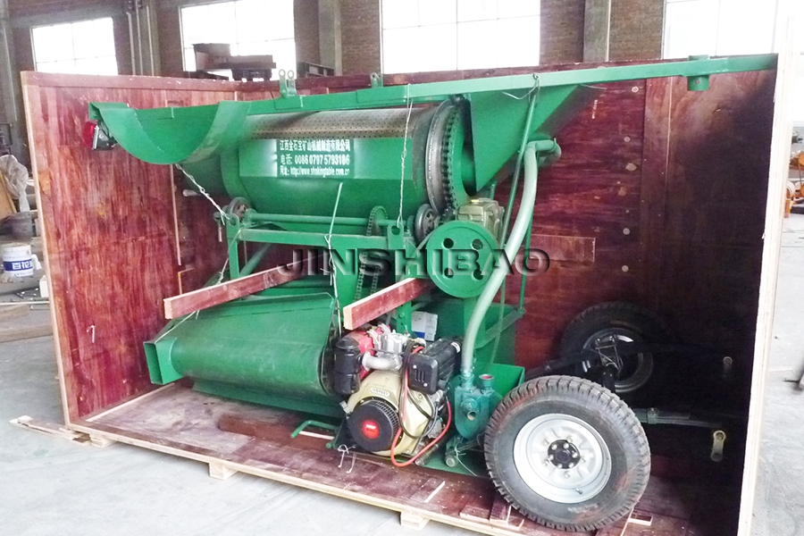 由于该设备通过柴油机来驱动,一台柴油机驱动滚筒筛,摇摆粘金毯,尾矿的固液分离系统,水泵等。当完成工作时可以通过