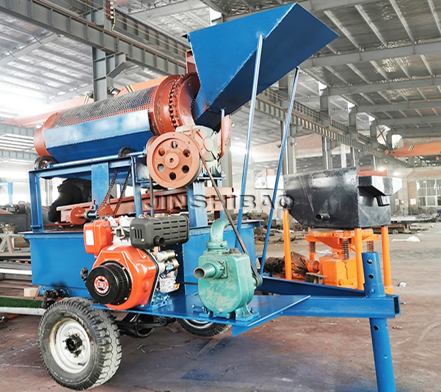 便携式滚筒淘金一体机具有1-5吨/小时的处理量,常用于淘金实验、小型淘金生产的作业