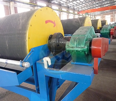其原理是当矿浆进入磁场区时,其中强磁性矿物被吸附在圆筒表面,弱磁性和非磁性矿物被甩掉排出,而吸附在圆筒表面上的强磁性矿物随圆筒旋转、被带出磁场区、用冲洗水冲入精矿槽中,完成分选作用。